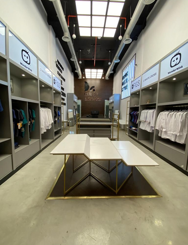يعد دكتورز لاونج من أفضل المتاجر المتخصصة في الملابس الطبية في السعودية. تم إنشاؤه من البداية للنهاية ابتداءً من التصاميم الإنشائية وأعمال المقاولات، وصولاً إلى التنفيذ المتكامل ليوفر بيئة عصرية ومريحة تعكس جودة العلامة التجارية وتلبي احتياجات الكادر الطبي بأناقة وتميز.